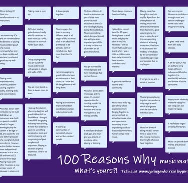 That’s why we'd love to hear from you. Please use the form below to share your story — whether it’s big or small, or simply a moment that mattered. Yours might be the one that inspires someone to support, participate, or recognise the transformative power of music.